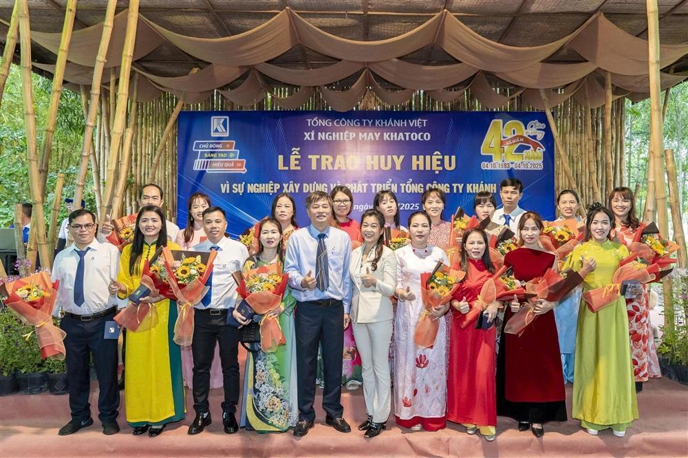Trong không khí hân hoan chào mừng kỷ niệm 42 năm ngày thành lập Tổng công ty Khánh Việt (04/10/1983–04/10/2025), ngày 11/10/2025 tại Công viên Du lịch Yang Bay, Xí nghiệp May Khatoco – đơn vị trực thuộc Tổng công ty Khánh Việt – đã tổ chức tri ân người lao động và trao Huy hiệu “Vì sự nghiệp xây dựng và phát triển Tổng công ty Khánh Việt ” cho cán bộ, công nhân viên có 10 năm và 15 năm cống hiến.