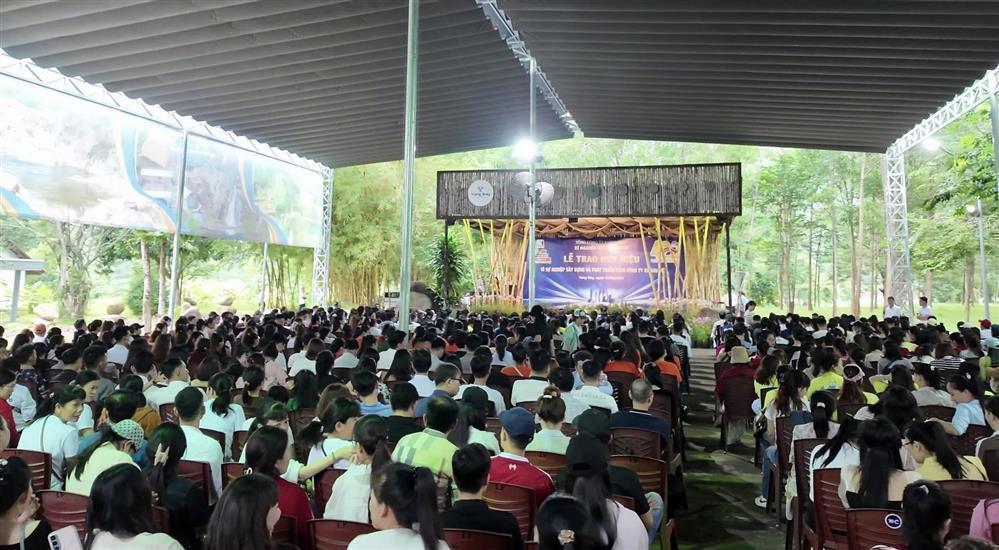Quang cảnh Lễ trao Huy hiệu Khatoco và tri ân người lao động nhân kỷ niệm 42 năm thành lập Tổng công ty Khánh Việt